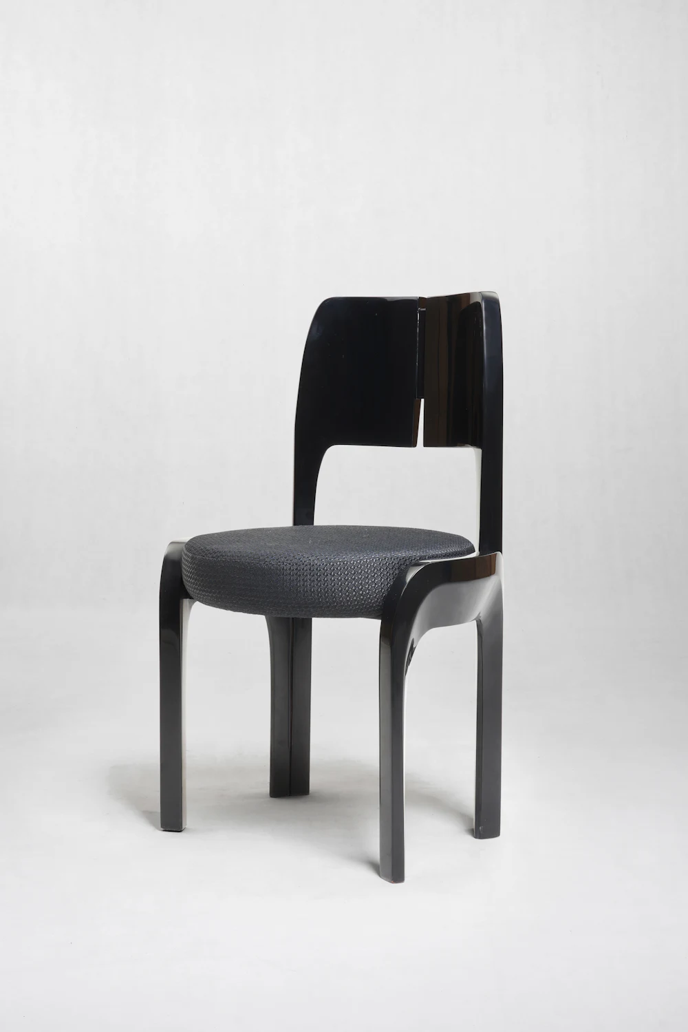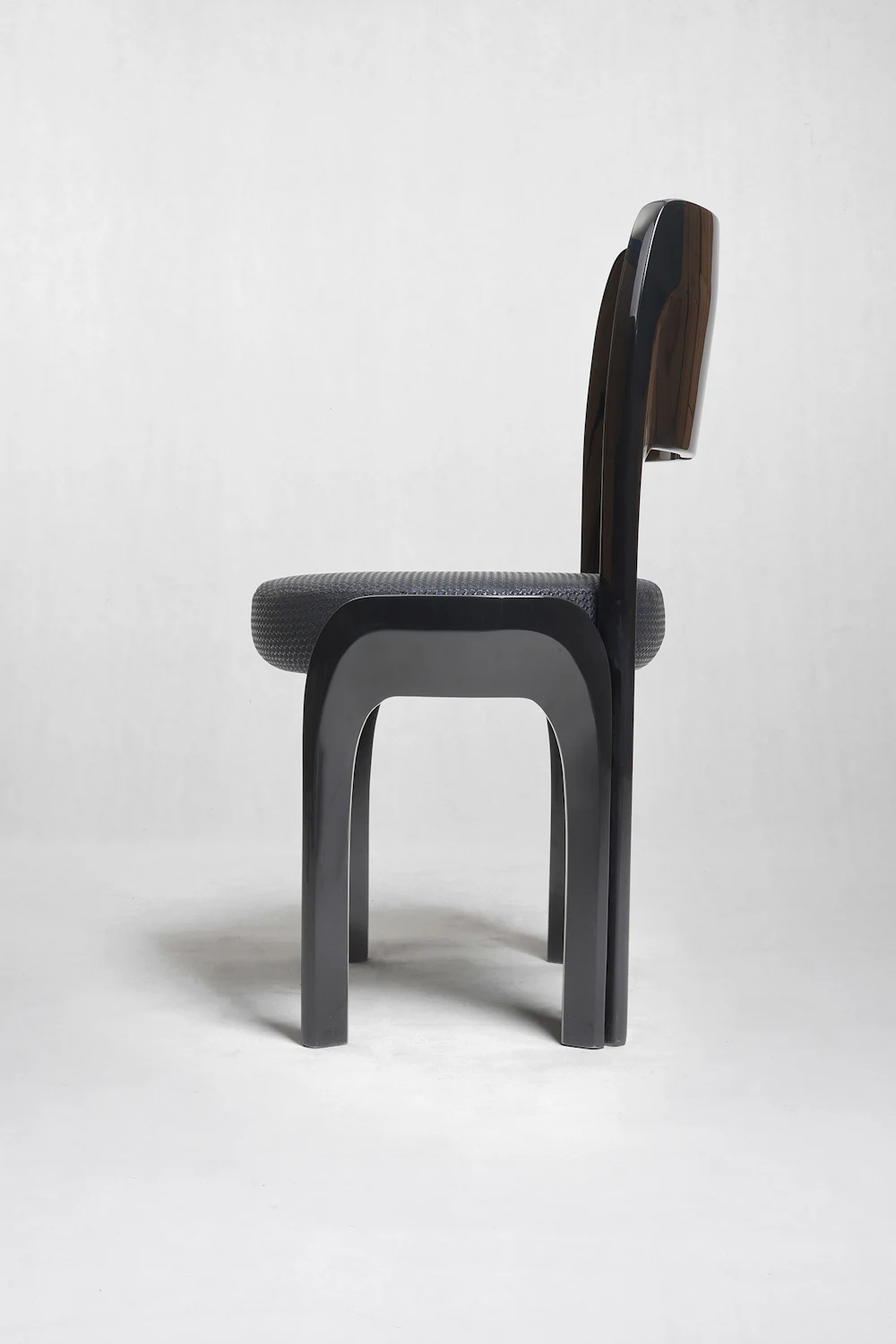 Khung ghế gồm bốn chân thẳng, tiết diện vuông, các cạnh được bo cong nhẹ nên không bị thô. Đặc biệt, hai chân trước kéo dài lên nối liền với phần tay vịn thấp, tạo thành một đường cong liên tục từ chân lên thân ghế. Các chi tiết được xử lý liền khối, ít mối nối lộ ra, mang lại cảm giác chắc chắn và tinh gọn.