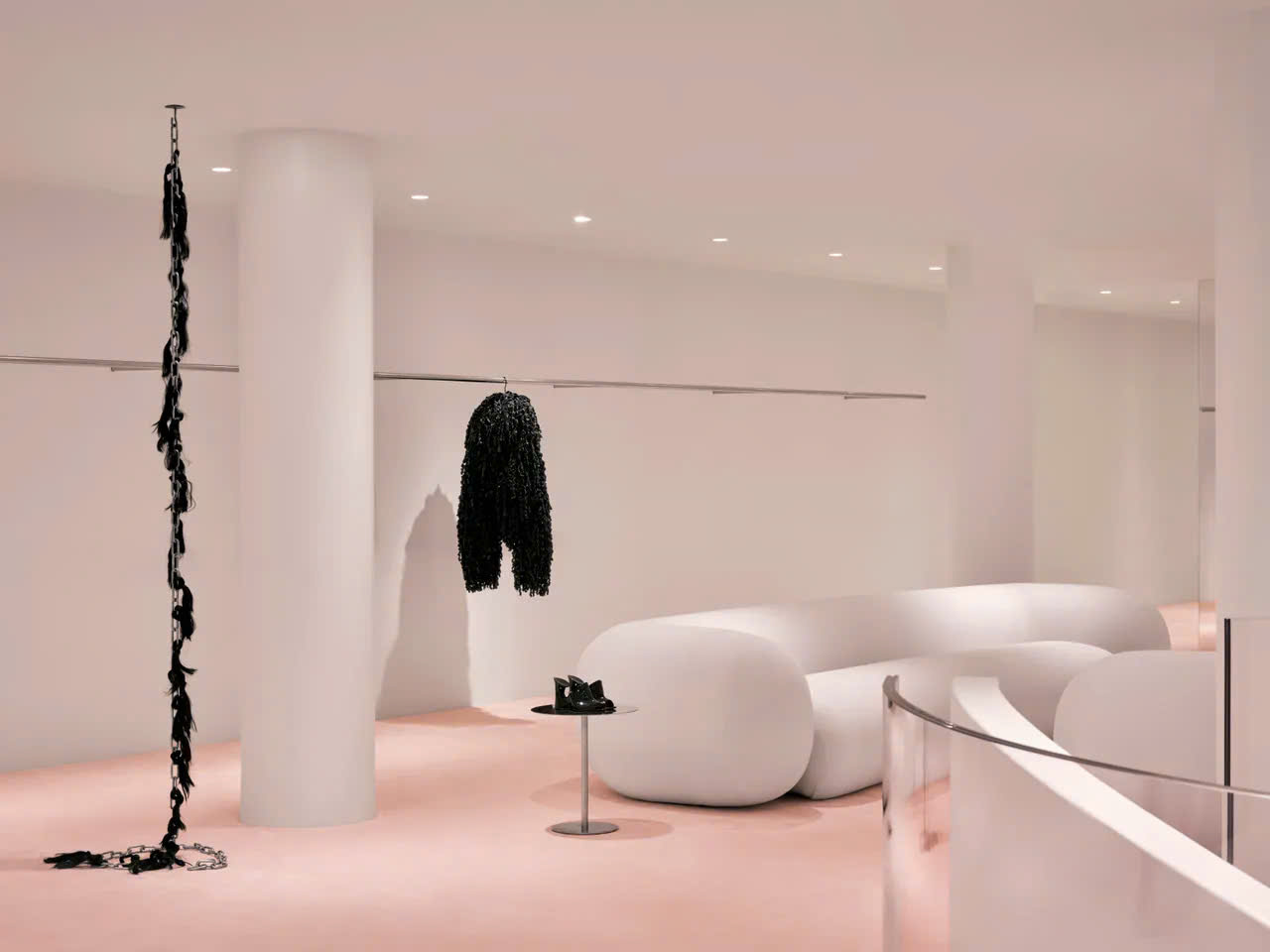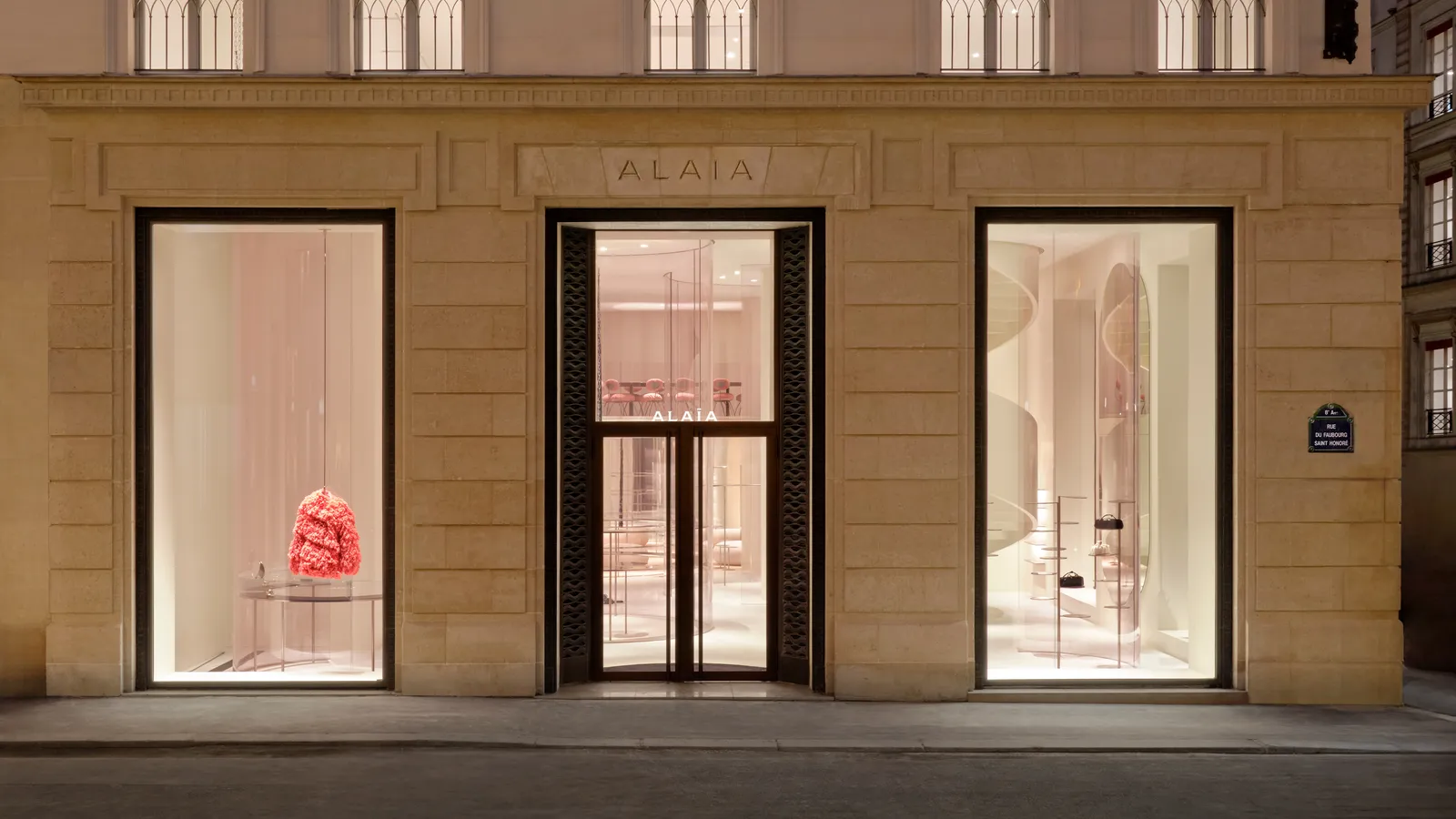Ý tưởng về “lớp da thứ hai”—một rào cản, một tấm khiên, một thứ gì đó thân mật, khiếm nhã hoặc gia đình—là một phần không thể thiếu của Alaïa, một phần quan trọng trong ngôn ngữ thiết kế của ngôi nhà. Các hình dạng mềm mại, điêu khắc và các đường cong đặc trưng định hình nên thời trang cao cấp được tạo ra từ những năm 80. Nội thất của cửa hàng flagship mới gợi lên khái niệm này thông qua tông màu hồng lưỡi và các màu nude khác trong danh mục màu sắc của ngôi nhà. Ở tầng trệt, bốn phòng hình ống trong suốt, mỗi phòng dành riêng cho một loạt quần áo và phụ kiện riêng biệt. Trong những phòng kính này, thời gian như ngừng lại và các sản phẩm trở thành một loại mẫu vật. Du khách nhìn vào và cảm thấy gần như không kín đáo—giờ đây họ đang tham gia vào một màn trình diễn phô trương.