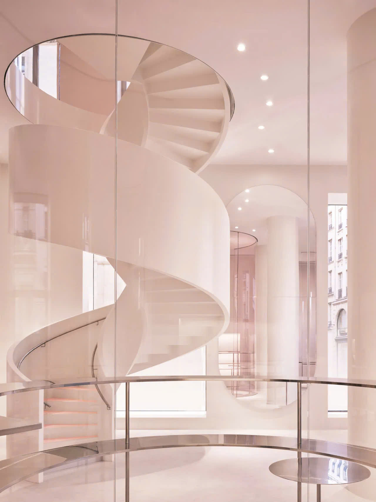 Cửa hàng flagship tại 15 Faubourg Saint Honoré hoàn thiện một bộ ba tác phẩm, với mỗi cửa hàng trong ba cửa hàng tại Paris của Alaïa đại diện cho một khía cạnh riêng biệt của thương hiệu. Hợp tác với giám đốc sáng tạo của Alaïa, Pieter Mulier, cửa hàng mới nhất được thiết kế bởi các kiến trúc sư Kazuyo Sejima và Ryue Nishizawa của công ty kiến trúc Nhật Bản SANAA. Năm ngoái, studio này, nổi tiếng với Grace Farms và các tác phẩm táo bạo khác, đã giành được giải thưởng Le Prix Charlotte Perriand danh giá năm 2025, một vinh dự ghi nhận những đóng góp có tầm nhìn xa của họ cho kiến trúc và thiết kế hiện đại. "Chúng tôi rất vinh dự khi có cơ hội hợp tác với Alaïa để thiết kế cửa hàng mới này", bộ đôi này chia sẻ với AD. "Đó là một không gian có ranh giới mềm mại và sự phản chiếu nhẹ nhàng, bao bọc và mở ra xung quanh du khách như một lớp da thứ hai, hòa tan vào một cánh đồng đồ vật khi mọi người di chuyển qua các lớp của dự án".