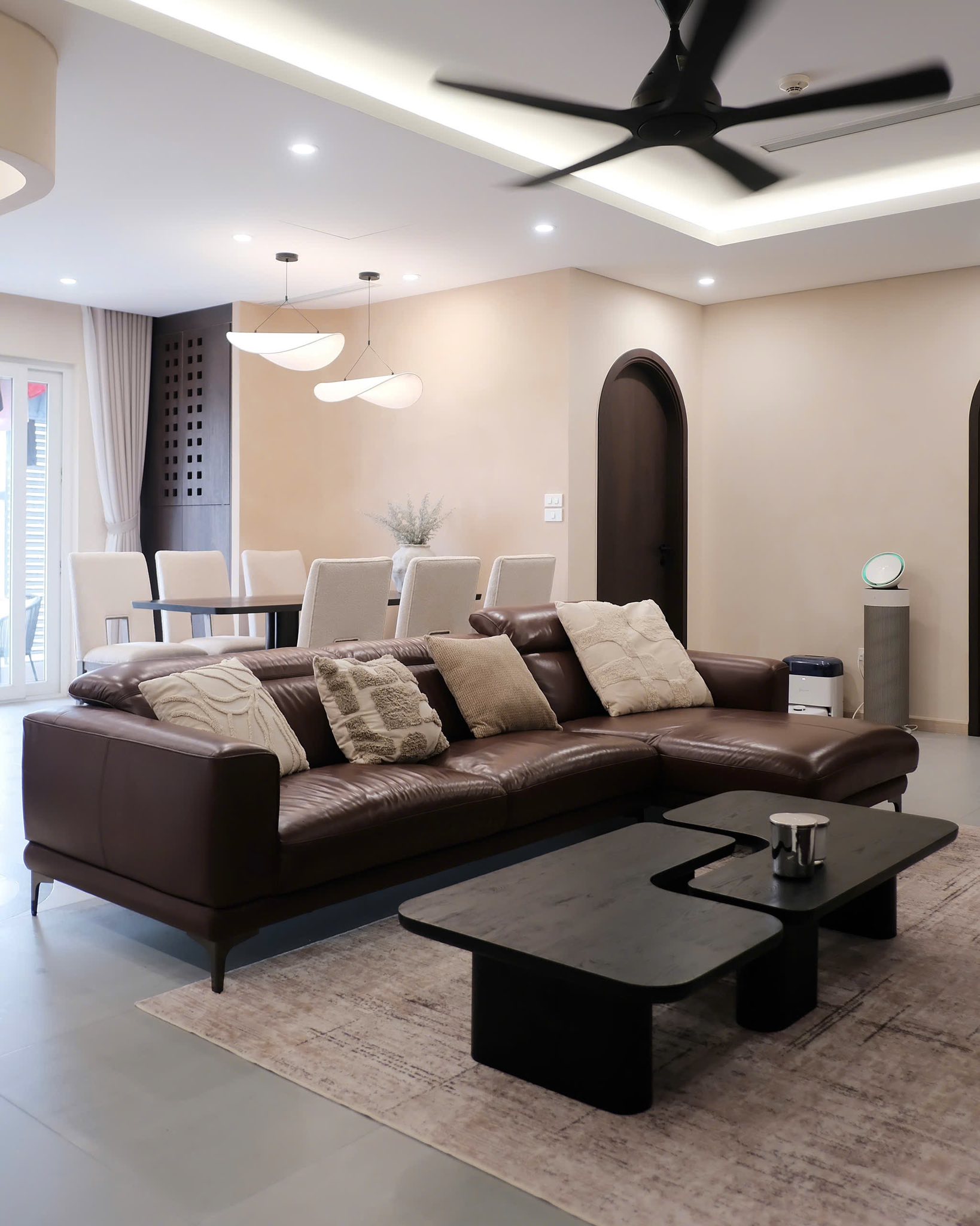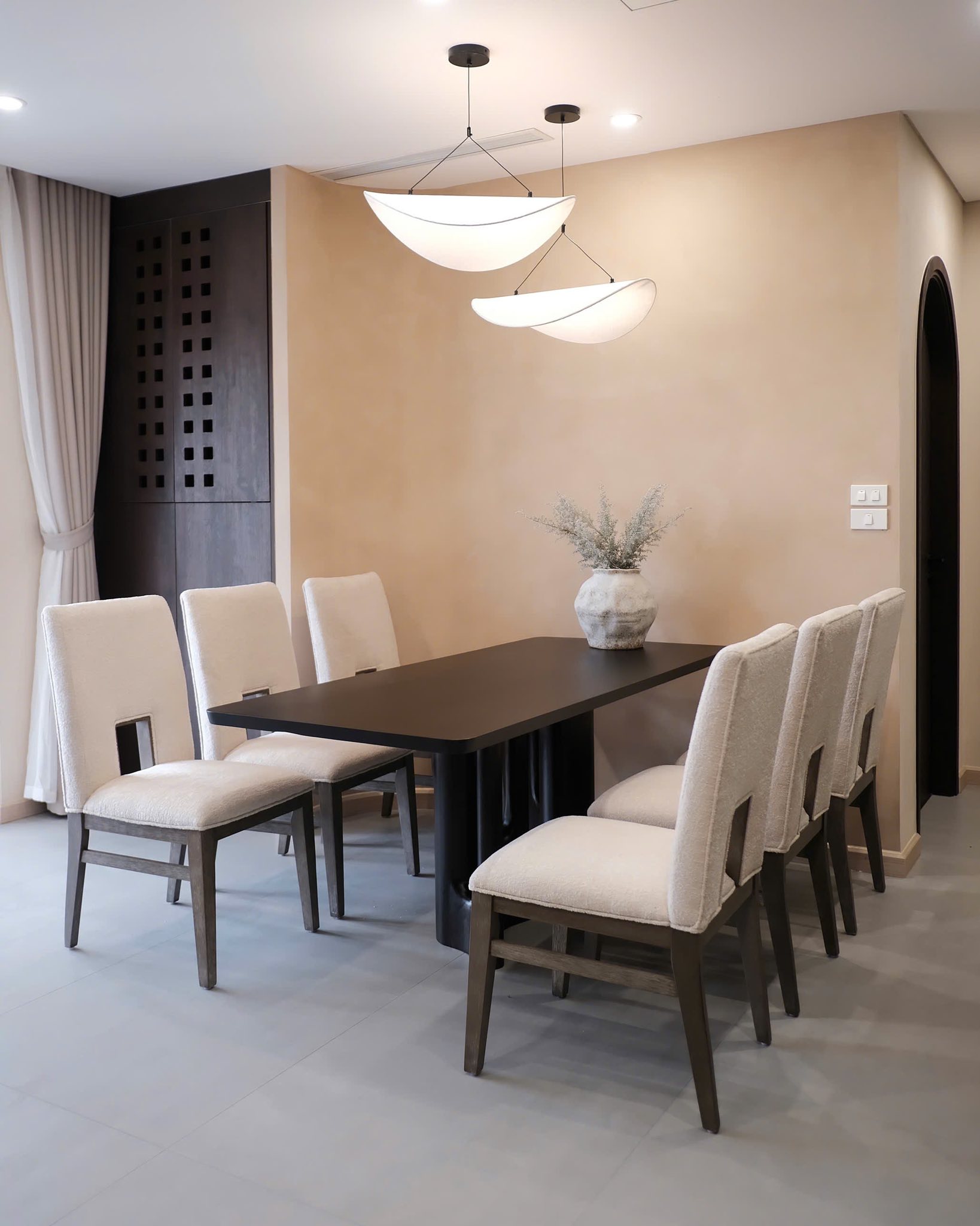 Ngôi nhà của khách hàng 𝐄𝐬𝐩𝐚𝐜𝐞 lần này mang phong cách hiện đại pha chút nét đương đại, với gam màu trung tính nhẹ nhàng và những đường nét tối giản. Không gian mở liền mạch giữa phòng khách và phòng ăn, tạo cảm giác thoáng đãng và ấm cúng.