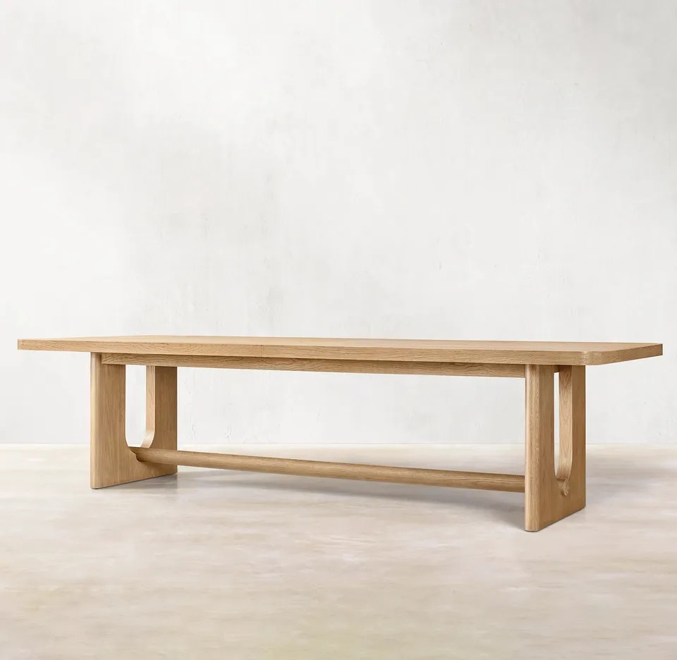 Các đường cong bán kính đặc trưng tương tác với các đường thẳng, tất cả đều nổi bật bởi sự ấm áp của gỗ tần bì có vân dày.