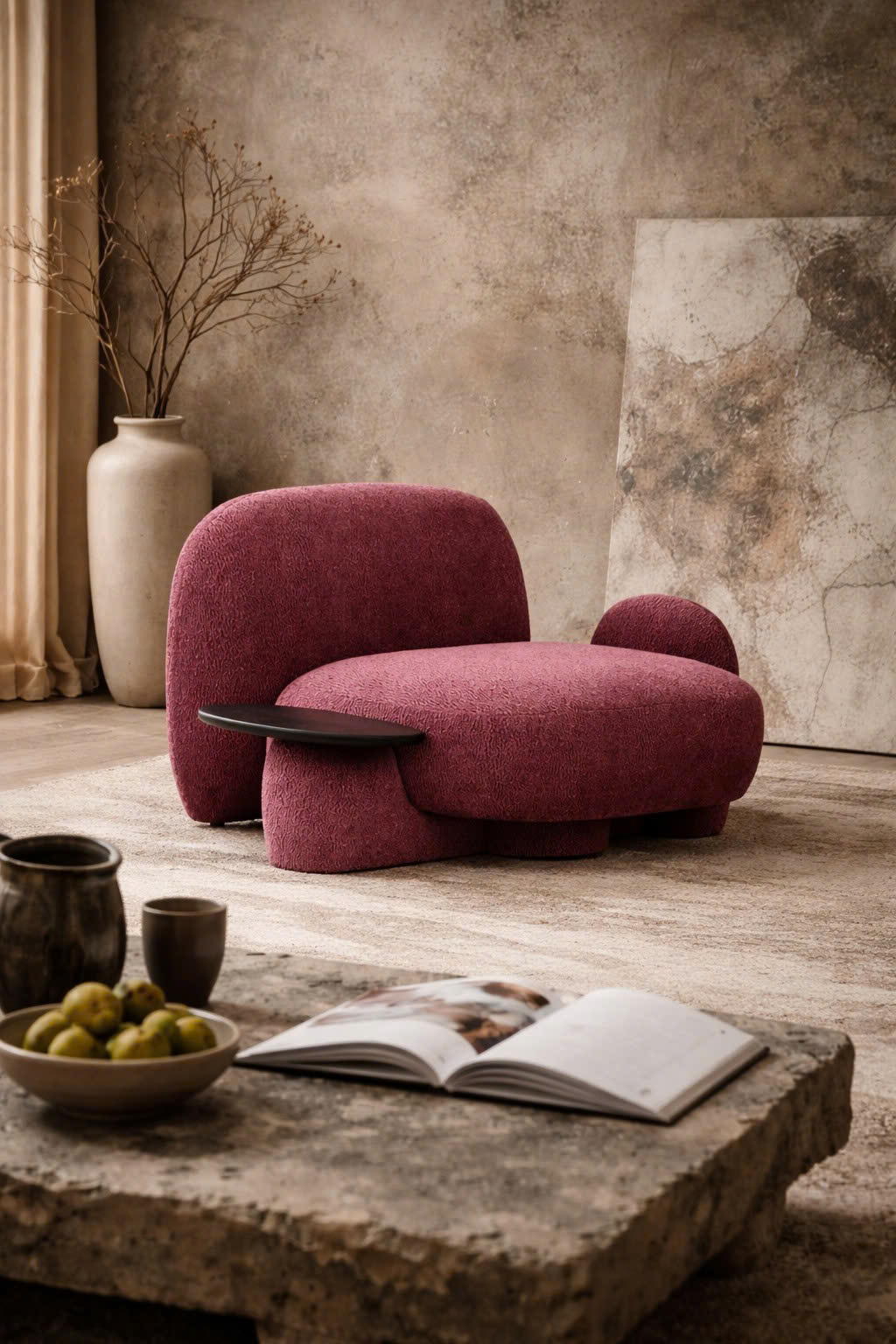 Sự tương tác hài hòa giữa các đường nét mềm mại và chất liệu tương phản tạo nên một tổng thể hấp dẫn, được chế tác để nâng tầm không gian sống. Lý tưởng cho những khoảnh khắc thư giãn hoặc đọc sách yên tĩnh, sản phẩm này cân bằng một cách hoàn hảo giữa sự thoải mái và phong cách, toát lên sự ấm áp và chào đón.