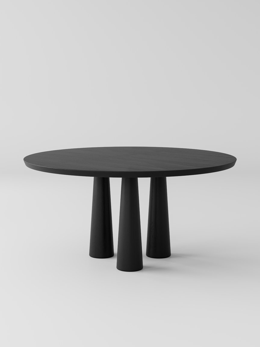 Ba chân được sắp xếp ở giữa của bàn Canopy neo giữ mảnh một cách trực quan bên dưới một mặt trên vô định hình đồng thời cho phép chân mở rộng thoải mái và dễ dàng di chuyển quanh bàn.