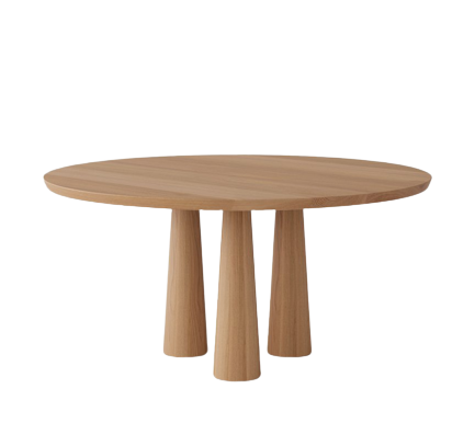 Các chân được bố trí ở giữa, gợi lên một cụm cây bên dưới mặt gỗ nguyên khối.