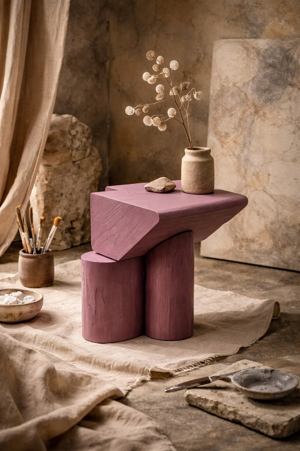 Đây không chỉ là một chiếc bàn phụ hay đôn trang trí, mà còn là một điểm nhấn nghệ thuật trong không gian — phù hợp với những không gian tối giản, gallery, hoặc nội thất mang tính cá tính cao.