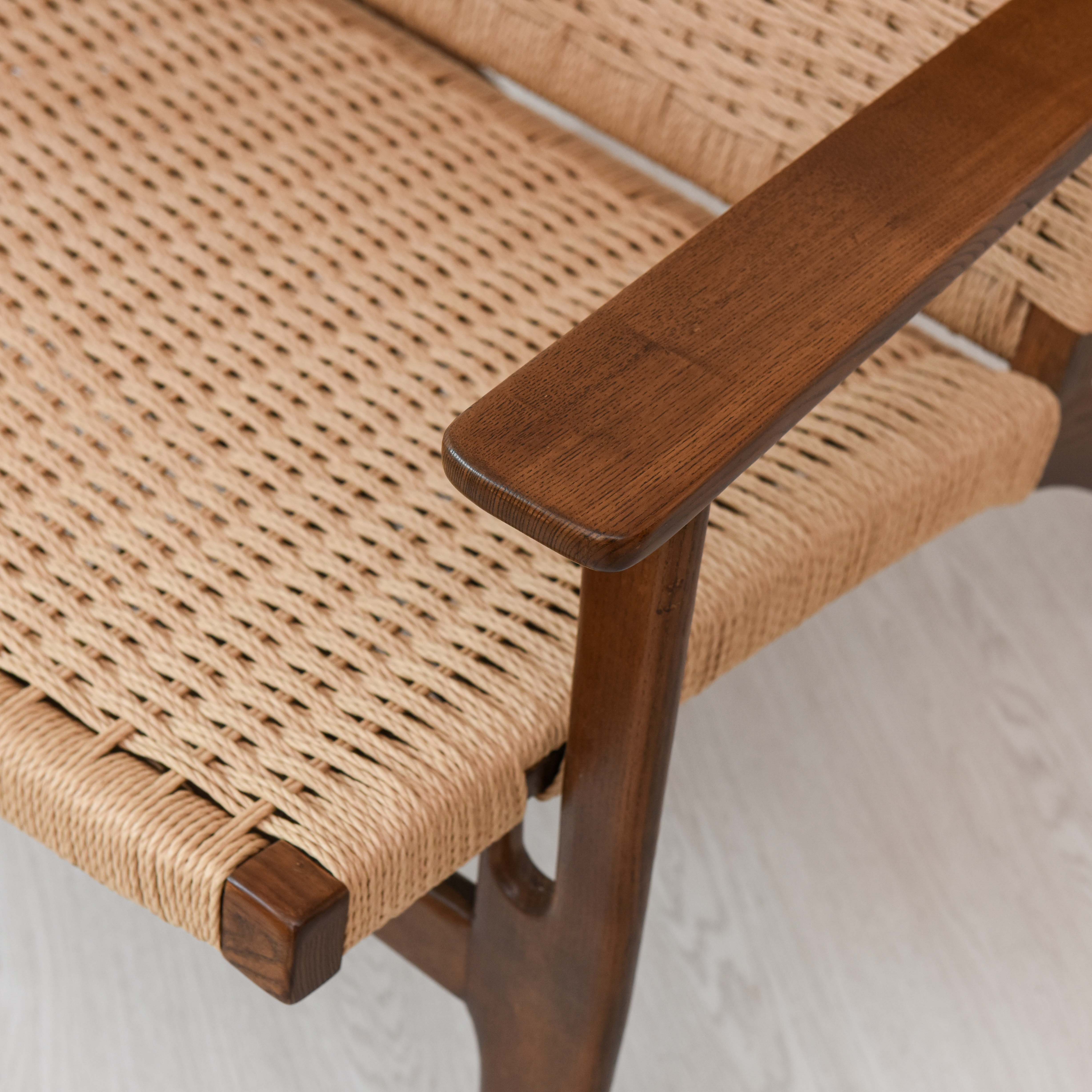 CH25 là một thiết kế khá đặc biệt khi nhà thiết kế liều lĩnh cho ra đời mẫu ghế armchair mà đệm ngồi và lưng tựa đan bằng dây cói, Mẫu ghế có tay vịn được thiết kế rộng hơn đem đến sự thoải mái và thư giãn cũng như thao tác đứng lên ngồi xuống khá dễ dàng.