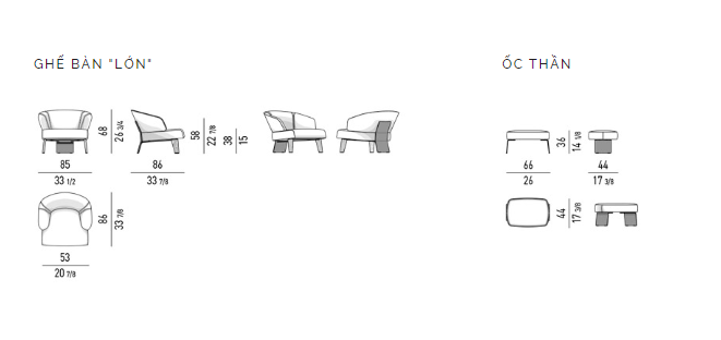 Ghế bành Donato – với tỉ lệ rộng rãi và các đường bao bọc – có lớp vỏ bọc ngoài là chất liệu cao cấp kết cấu đúc với lớp bên trong là mút K43 cao cấp , mật độ cao .