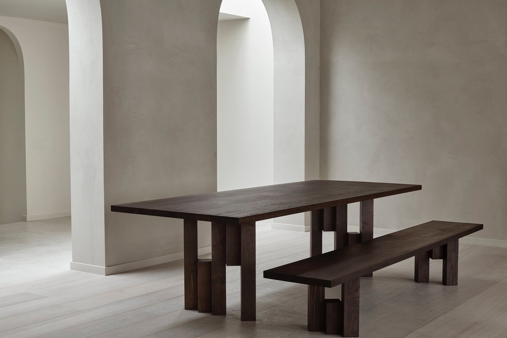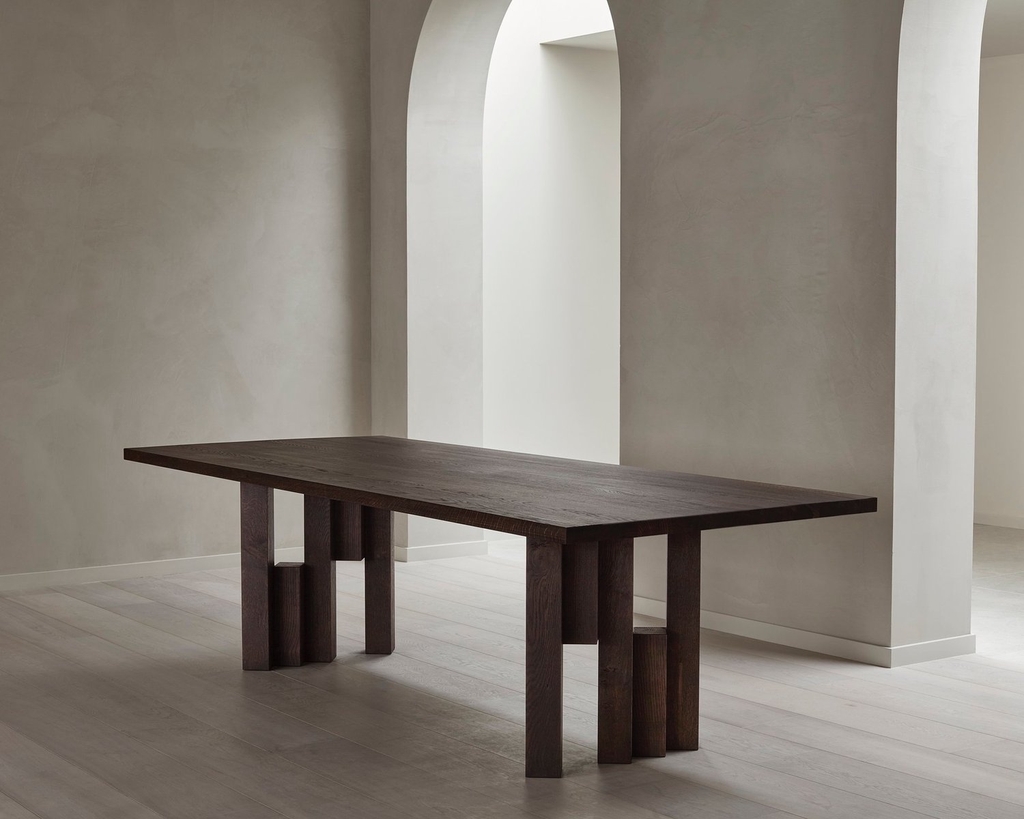 Một sự tương tác của khối lượng và khoảng trống. Chiếc bàn Fenestra được lấy cảm hứng từ Chủ nghĩa Biểu hiện Gạch, phong trào kiến trúc có thể thấy ở khu vực 'Quy hoạch phía Nam' của Amsterdam - quy hoạch phát triển thành phố do HP Berlage thiết kế vào năm 1915. Chiếc bàn được thiết kế bởi Aad Bos.