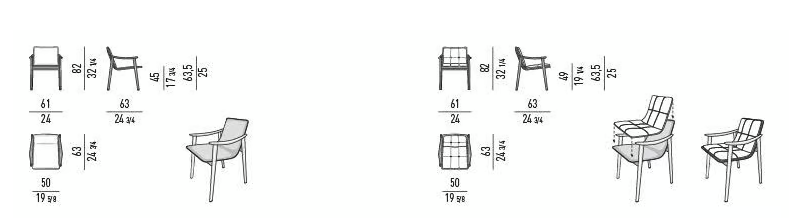 Trong phiên bản Fynn Saddle-Hide, một bộ phận giấu yên duy nhất kết hợp cả ghế và tựa lưng. Ghế bành và ghế bành nhỏ nằm dài có đệm đệm riêng biệt, tùy chọn trong phòng ăn ghế bành nhỏ