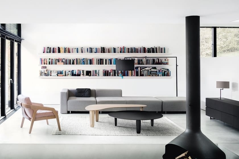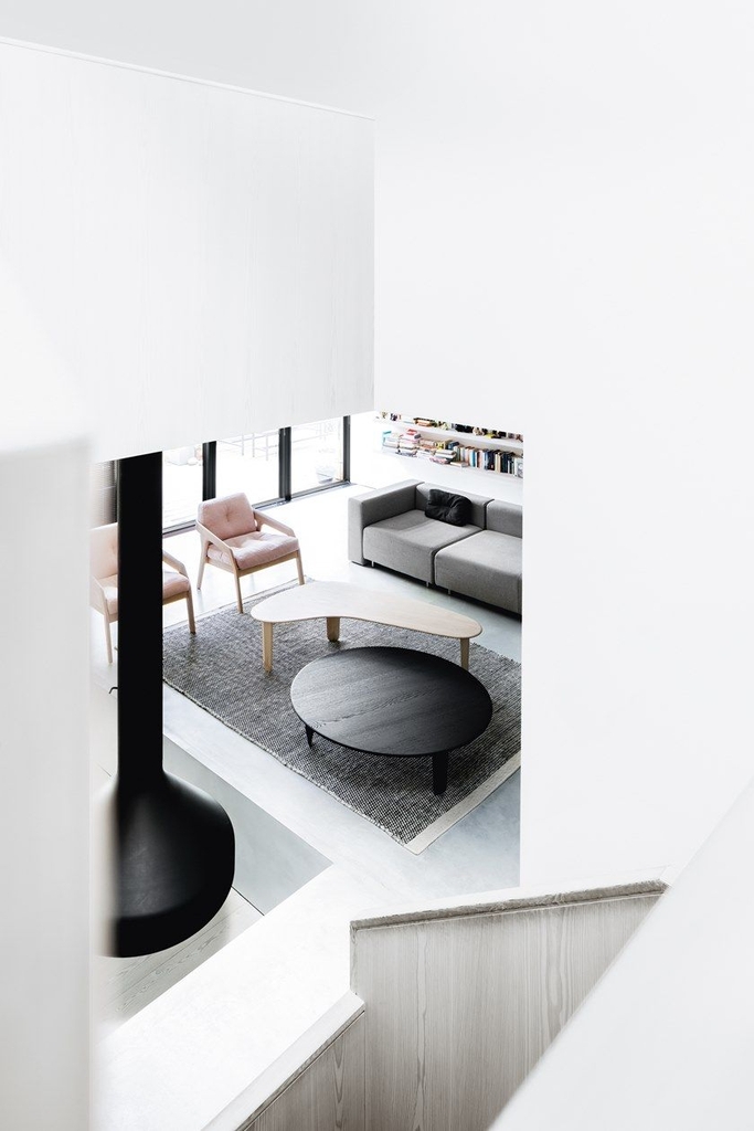 Những viên kim cương được cắt bằng gỗ nguyên khối trông mạnh mẽ về mặt điêu khắc và đồng thời dường như nổi. Bốn hình dạng nguyên mẫu của mặt bàn mời gọi sự tương tác hình học: Hình tam giác, hình tròn, hình chữ nhật và hình dạng tự do chiếm lấy thiết kế của căn phòng.