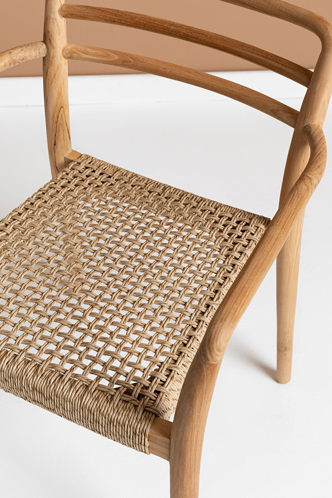 Nâng tầm không gian của bạn với chiếc ghế có hình dạng hữu cơ này có đế bằng gỗ tự nhiên. Phần ghế đan thủ công không chỉ mang lại sự thoải mái mà còn thêm nét thủ công mỹ nghệ cho chiếc ghế đa năng này. Với các cạnh cong duyên dáng, chiếc ghế chuyển đổi liền mạch từ ghế ăn sành điệu thành ghế văn phòng chức năng.