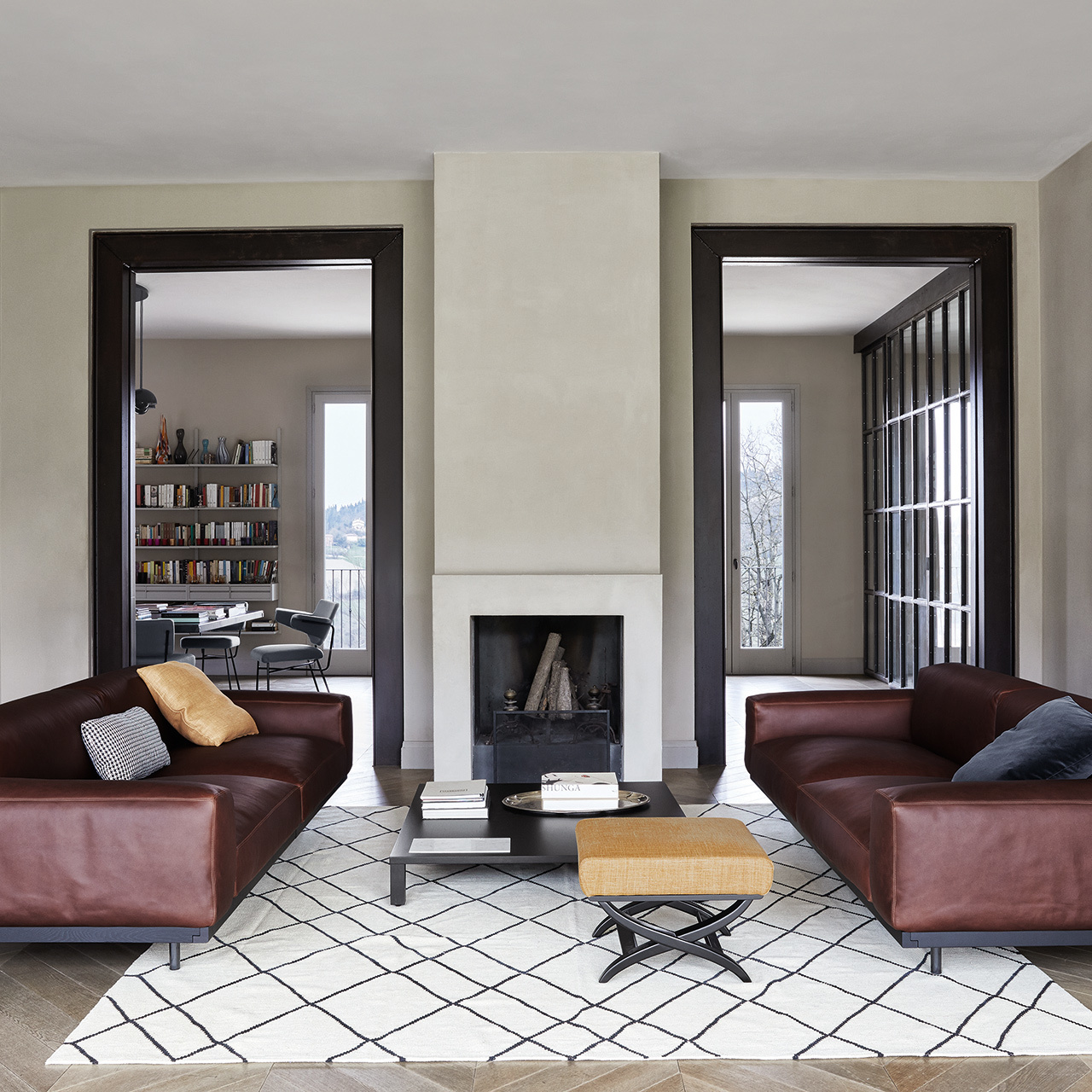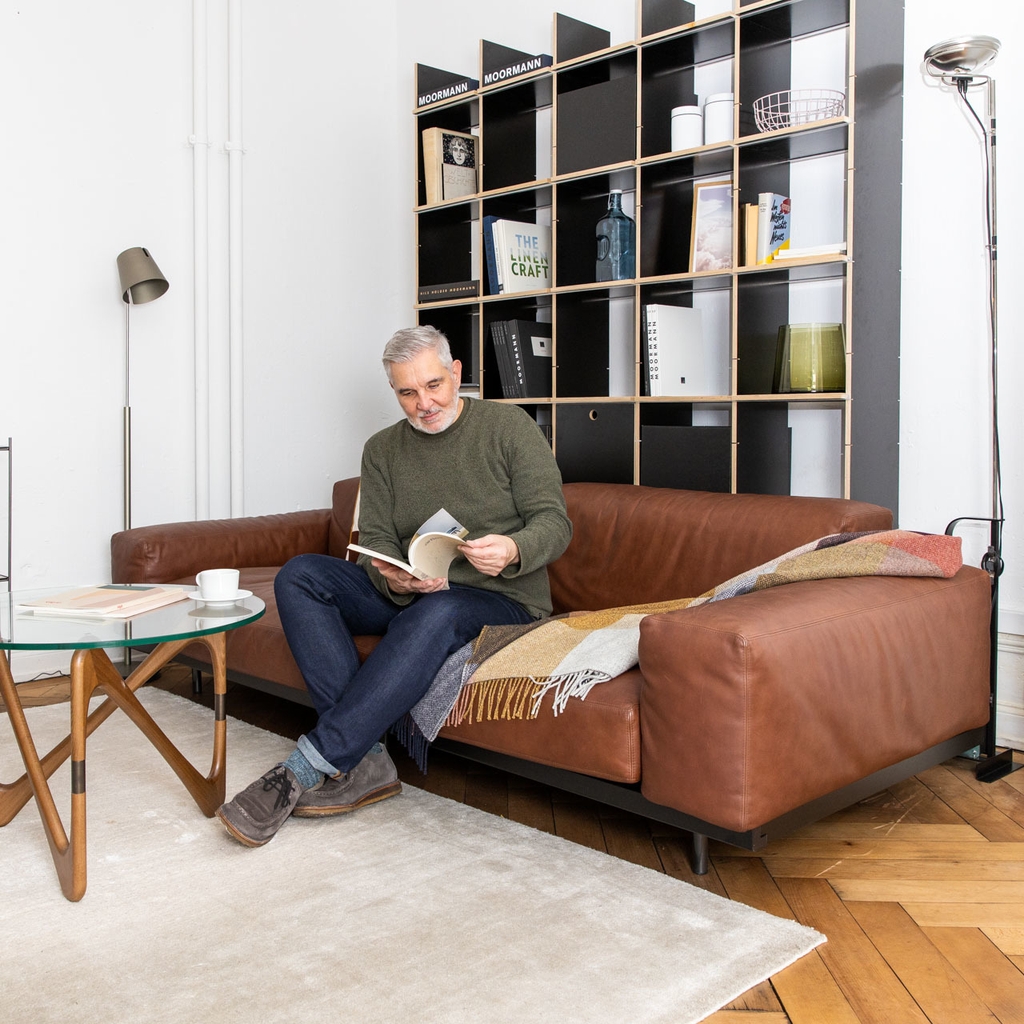 Một khớp nối được thiết kế khéo léo cho phép ghế sofa ba hoặc bốn chỗ ngồi được cố định trên những chiếc chân thanh mảnh, khiến Naviglio rất phù hợp với nội thất hiện đại.