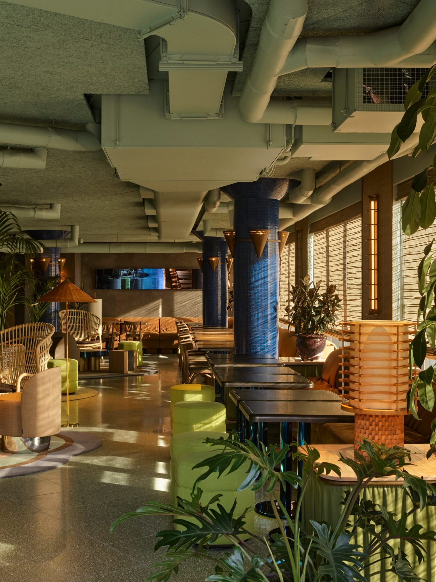 Phần ngoại thất, do kiến trúc sư Callum Fraser của Fraser & Partners thiết kế, cũng được chăm chút tỉ mỉ. Vươn lên từ một khối hình tam giác, khối đế khách sạn 10 tầng được ốp bằng các tấm bê tông khí chưng áp có kết cấu sần sùi—274 tấm, được đúc sẵn ngoài công trường để trông giống đá xanh—lấy cảm hứng từ cả cảnh quan núi lửa của Melbourne và môi trường xây dựng của thành phố từ những năm 1830. Các tấm kim loại bao quanh tòa nhà theo kỹ thuật tạo hiệu ứng lông vũ, phản chiếu ánh sáng khác nhau suốt cả ngày, hoạt động gần như một chiếc đồng hồ mặt trời theo các mùa. Chương trình nghệ thuật của khách sạn làm nổi bật chiều sâu và ý đồ địa phương của thiết kế. Tác phẩm Mirror Sheila của Justene Williams thống trị sảnh chính như một tác phẩm điêu khắc kiêm người bảo vệ mang hơi hướng tương lai. Bài thơ riêng của Jazz Money, These Infinite Beginnings, hiện diện khắp tòa nhà bằng ánh sáng và âm thanh. Các tác phẩm của Mia Boe, Mikala Dwyer, Marion Abraham và những nghệ sĩ khác bổ sung thêm chiều sâu và câu chuyện cho tác phẩm.