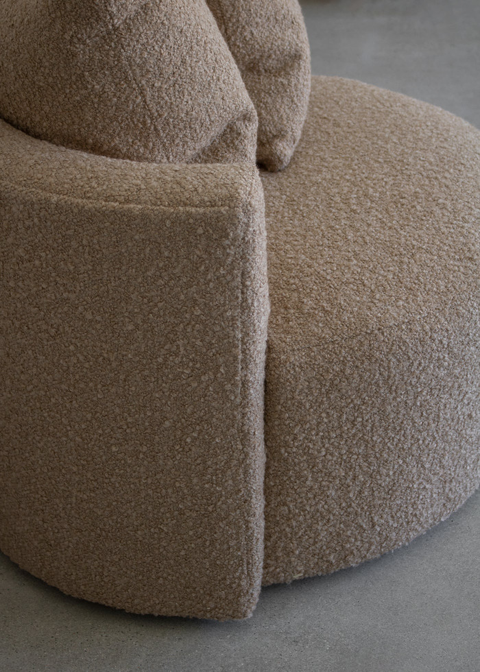 Những gợi ý tinh tế của thời kỳ trang trí nghệ thuật được chú ý trên chiếc ghế xoay hình bầu dục sang trọng này. Chất liệu vải ấm cúng của nó mang lại kết cấu tuyệt vời để cuộn tròn với một cuốn sách hay.