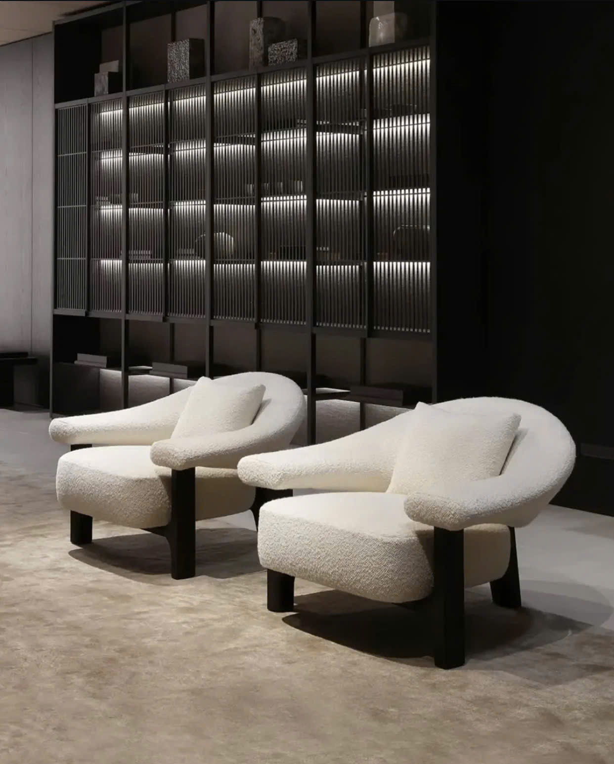 Những đường cong mềm mại và bao bọc của bộ sưu tập Owen gợi lên cảm giác thoải mái tuyệt đối, thể hiện ý tưởng về sự sang trọng tinh tế và đương đại. Phần tựa lưng, với chuyển động uốn lượn gợi nhớ đến dải Möbius, thanh lịch biến thành tay vịn, tạo nên sự hài hòa hoàn hảo với cấu trúc gỗ chắc chắn.