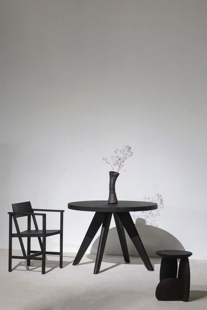 Chiếc ghế đẩu gỗ ba chân trông giống như sự sắp xếp của đá để tạo thành một công trình kiến trúc. Tác phẩm này ra đời từ kỹ năng và bản năng của một nghệ nhân bậc thầy, nơi các nhà thiết kế trao cho nghệ nhân cơ hội tạo ra những tác phẩm mà không cần có kế hoạch rõ ràng cho đến khi trở thành một tác phẩm phản ánh tay nghề thủ công đồ gỗ cực đỉnh.
