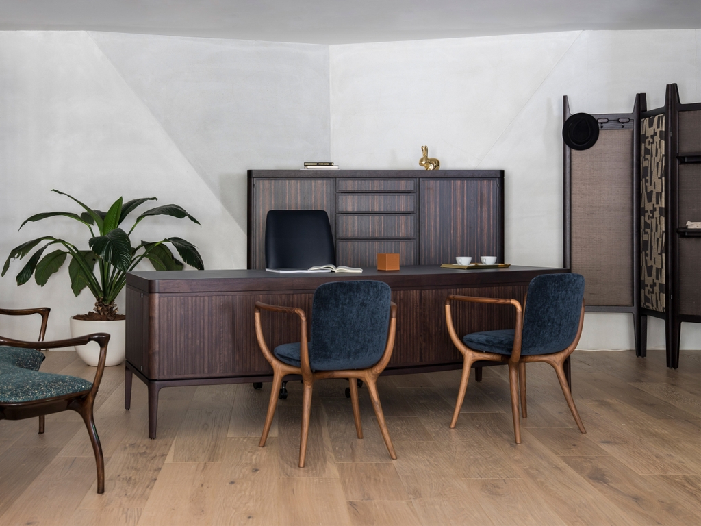 Cấu trúc được làmừ gỗ tần bì nhập khẩu . Chân trước được kết nối với chân sau thông qua hai tựa tay hình sin và thanh lịch, được mở rộng sang hai bên để cải thiện sự thoải mái.