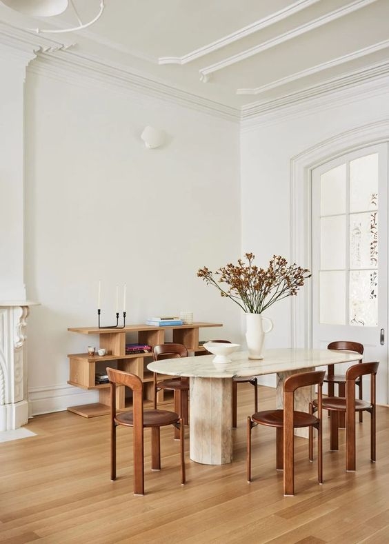 Ở đây, chiếc ghế mang tính biểu tượng đã được sửa đổi với tông màu mới và ghế bọc nệm để mang lại sự thoải mái hơn và phù hợp với lối sống hiện đại