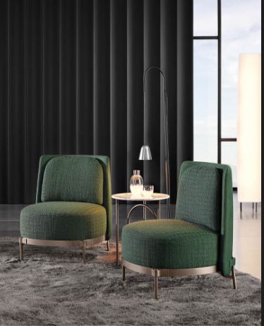 Đường cong mềm mại của vỏ, thiết kế tay vịn và đệm lưng mềm mại, làm nổi bật đường nét thuần khiết và bao bọc của chiếc ghế bành.