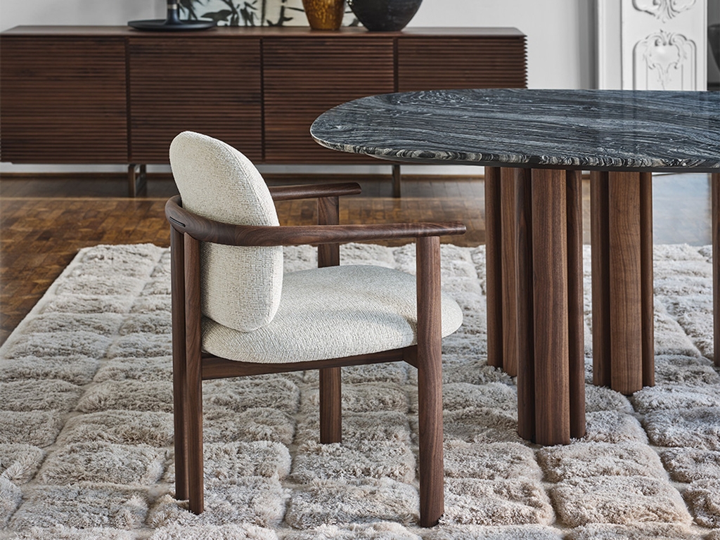 Chiếc ghế ăn điêu khắc này tái hiện hình dáng cổ điển qua lăng kính hiện đại đặc trưng. Được chế tác từ gỗ nguyên khối với sự tỉ mỉ đến từng chi tiết đặc trưng của Porada, thiết kế tập trung vào hai chân sau hội tụ thành hình chữ T ấn tượng.