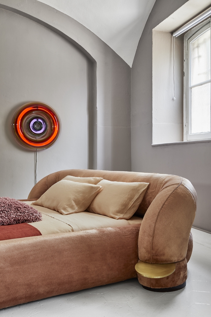 Hình học uốn lượn và những đường nét táo bạo của các nhà thiết kế vĩ đại, chẳng hạn như Alessandro Becchi và Mario Bellini, đã truyền cảm hứng cho chiếc giường Tito, với sự gợi cảm, êm ái và — đồng thời — hình dáng hoành tráng.