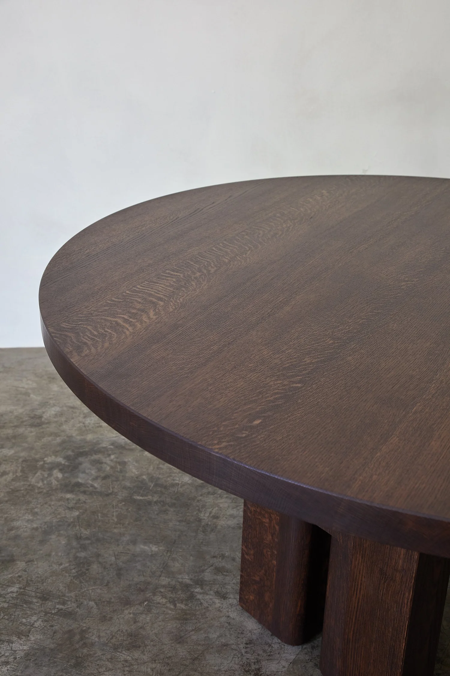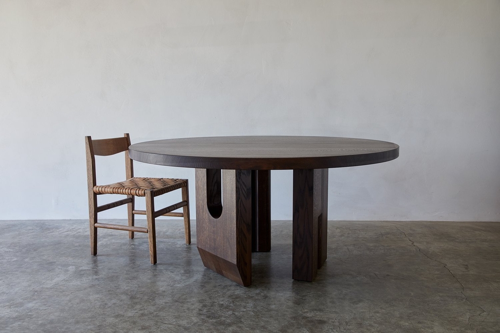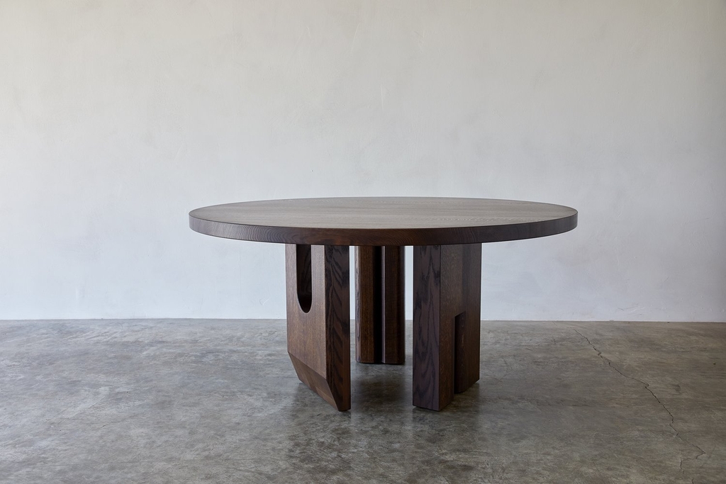 Nếu bàn ăn này là một người thì đó sẽ là kiểu người mạnh mẽ, trầm lặng và đẹp trai. Không thể đoán trước được, những chiếc chân chắc chắn của nó được chạm khắc với các lỗ có hình dạng khác nhau tạo nên sự bất ngờ bất đối xứng.