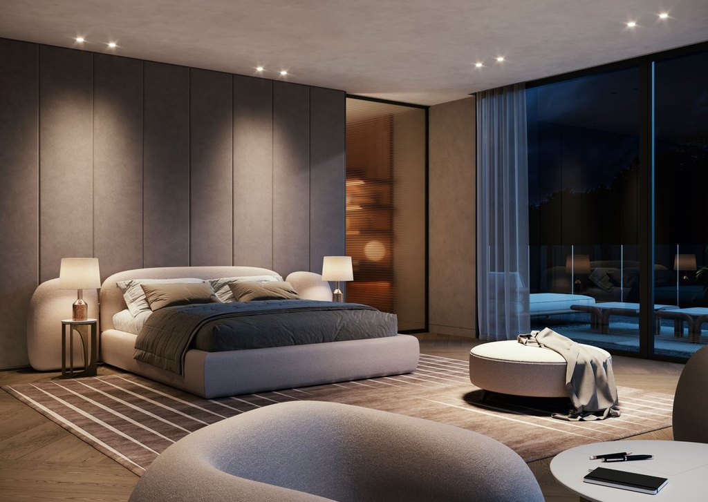 Vao Bed chiếc giường bọc nệm mới đã được bổ sung, với hình dáng uốn lượn và kích thước rộng rãi, hài hòa với tâm trạng của bộ sưu tập. ôm lấy bàn cạnh giường ngủ.